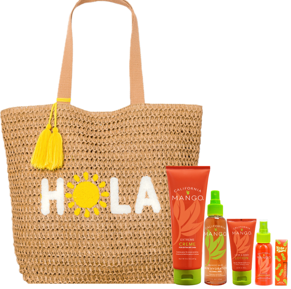 Get summer-ready with the ultimate beach essential – the California Mango 5 Piece Hola Beach Bag Set. Packed with your favourite mango-infused body, hair and skin must-haves, this limited-edition collection is perfect for holid...